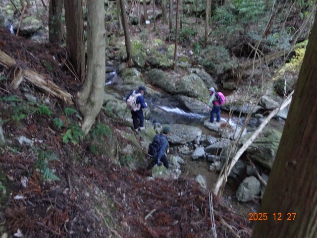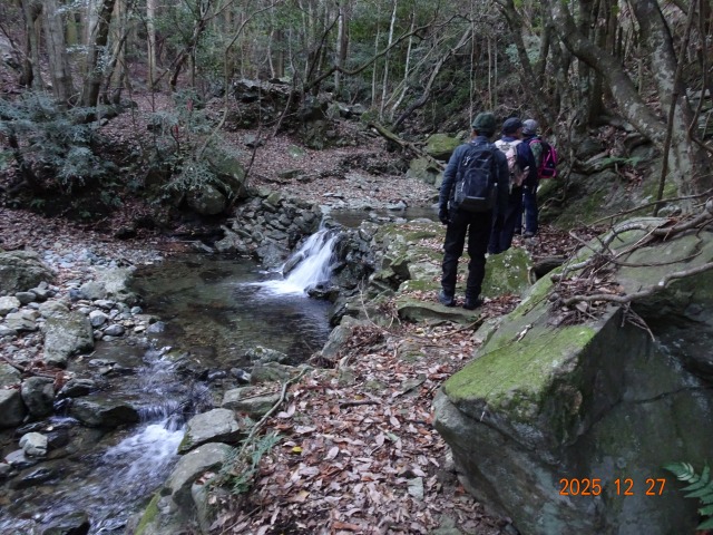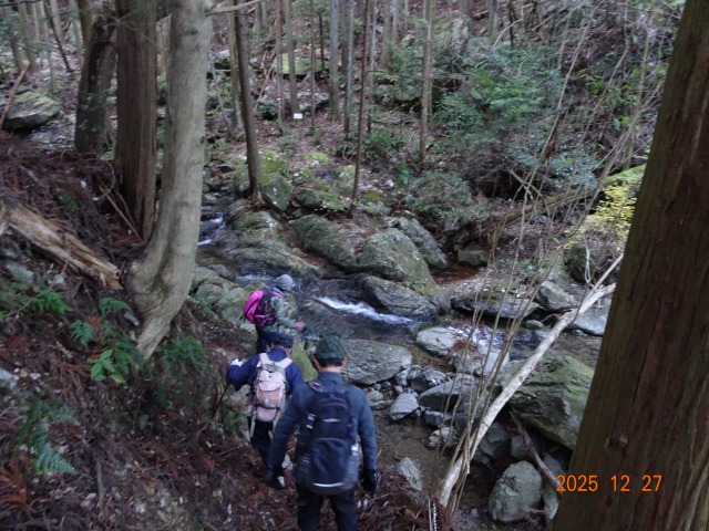 12月27日に朝熊ヶ岳下見を林・橋川・宇仁・岡本で実施しました。今回は北谷コースを登り二瀬橋コースを下る周回コースです。朝熊山に登る数あるコースの中で一番変化にとんだ魅力的なコースですが、慎重に登らないと危険を伴います。