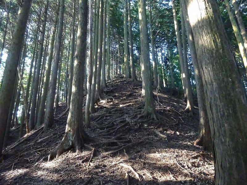 11:40笹原の稜線、遠足尾根の林道に入ると日陰になり歩きやすいです。12:40遠足尾根・大鉢山分岐からは脚の疲れがでるころです。杉林の中は暗くも感じ足元には注意必要です。14:00遠足尾根