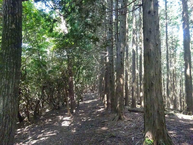 植林,樹林の尾根道は、木陰で時々涼しい風もあり、予定時間ピッタリで歩く事ができましたが、例会当日は休憩時間等を考慮すると、到着が約20分ぐらい遅くなる予定です。ご了解をお願いします。