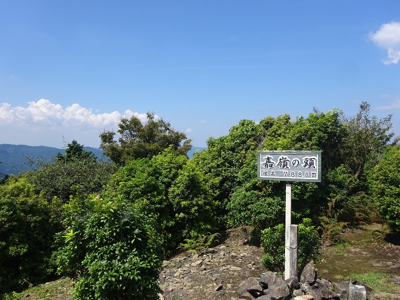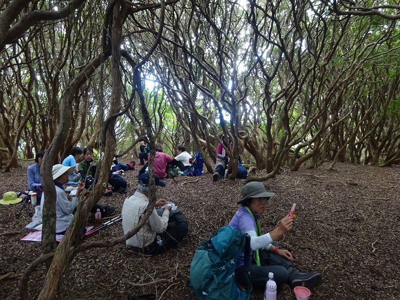 「B大洞の峰」の木陰で昼食休憩をとり、12時に「C嘉嶺の頭」へ出発。2つの小さな渡渉を渡り、本日最大?の急登に来ました。急登の前と後には休憩を取り、13時過ぎに到着。山頂には心地よい風があり、疲れをほどよく癒してくれました。