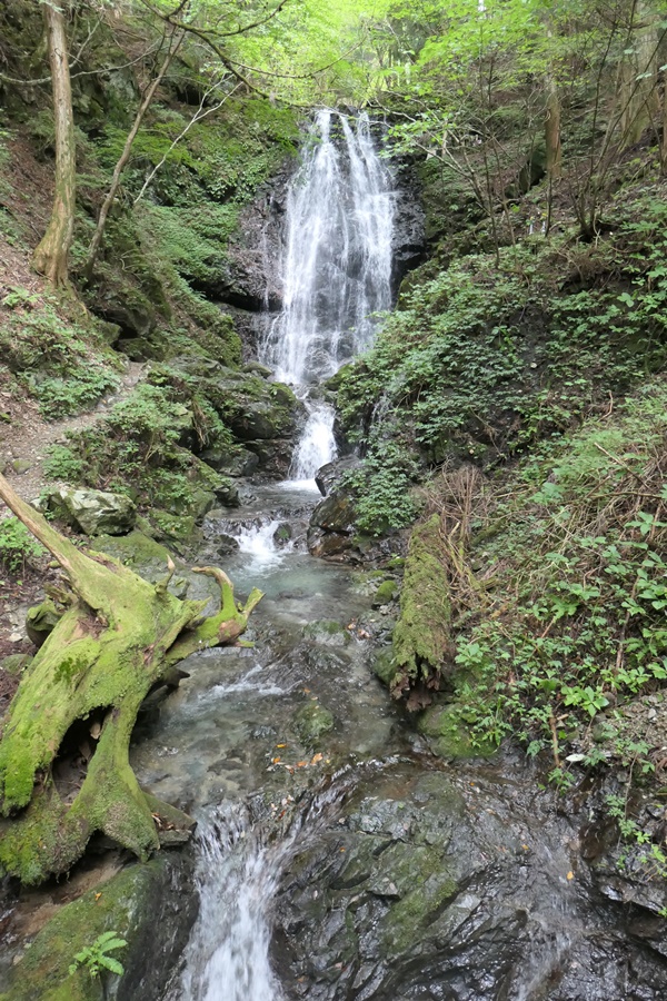 1班、2班は快調!遅い3班を振り返っては待つ待ち登る。不動滝の分岐の丸太の椅子で大休憩、が、長く待つと汗冷えする。班編成して進む。(持参した無線機2台の1台が動かない、反省。)