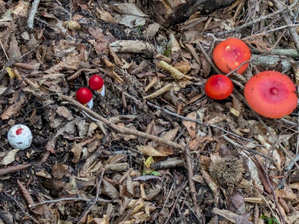 赤いタマゴタケ発見!赤ちゃん→こども→おとなとファミリーでこれは貴重!写真オッケー(トレーニングなので基本は写真はだめです)