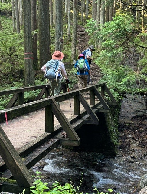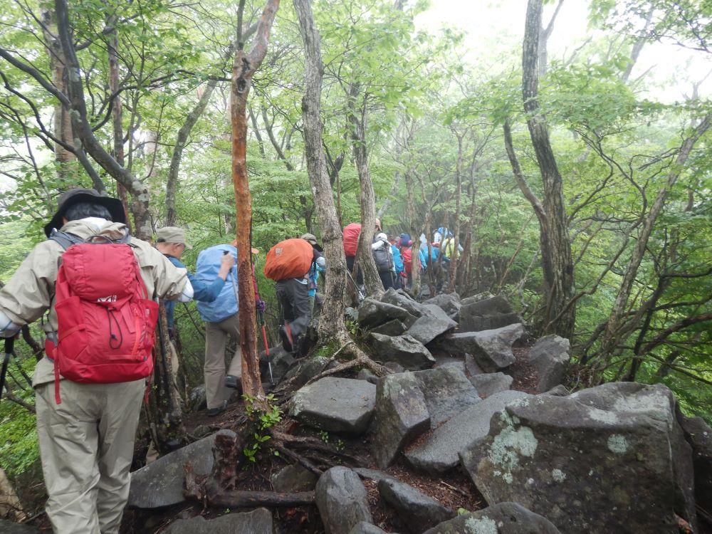 ★私たちはいつもの例会のゆっくり歩きより少し早く歩いて、8時間以内に下山できるように頑張りましょう!