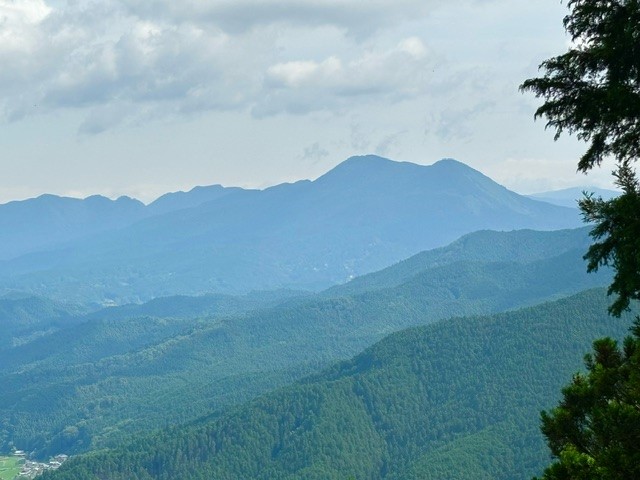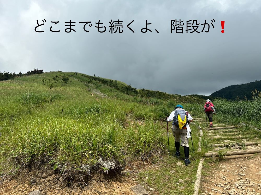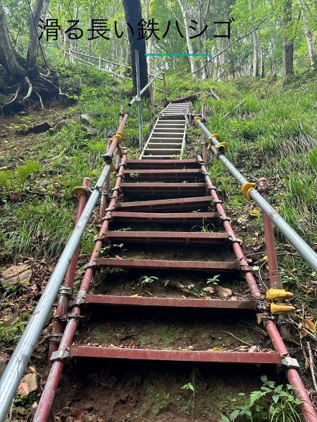 この日は15時頃から雨と雷予報。急ぎ足で登るも、35℃の高温で無風、陰になる樹木もなく階段階段の登りはきつかったです。雨に降られず無事下山できました。