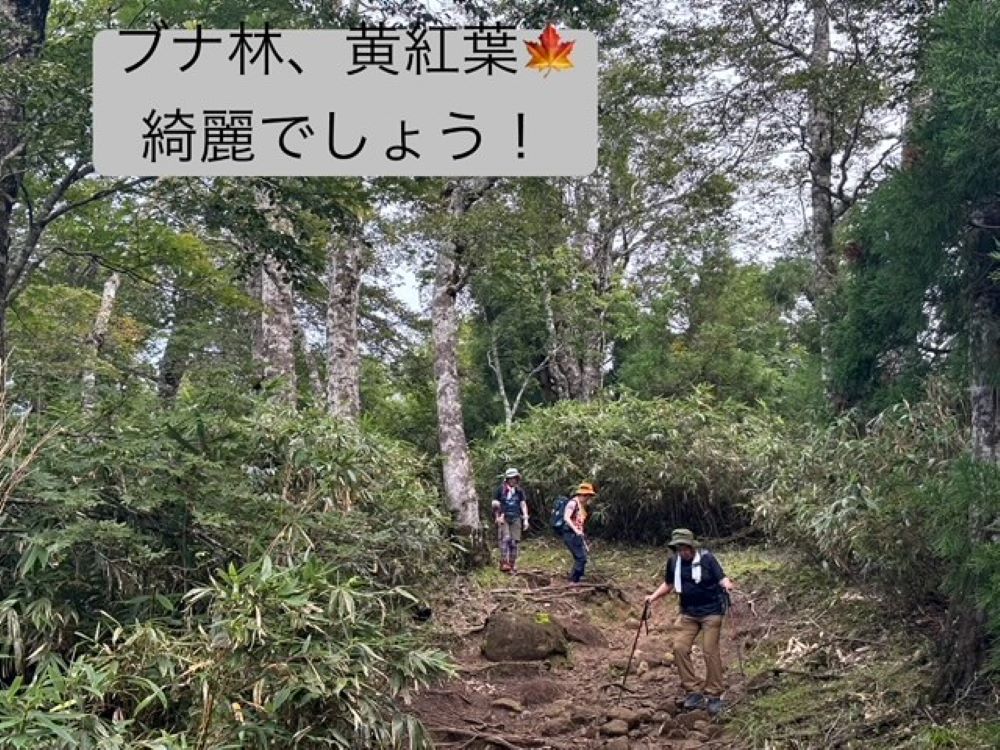 紅葉真っ盛り、ブナ林、ドウダンツツジ、ナナカマド、カエデの紅葉が楽しみです。